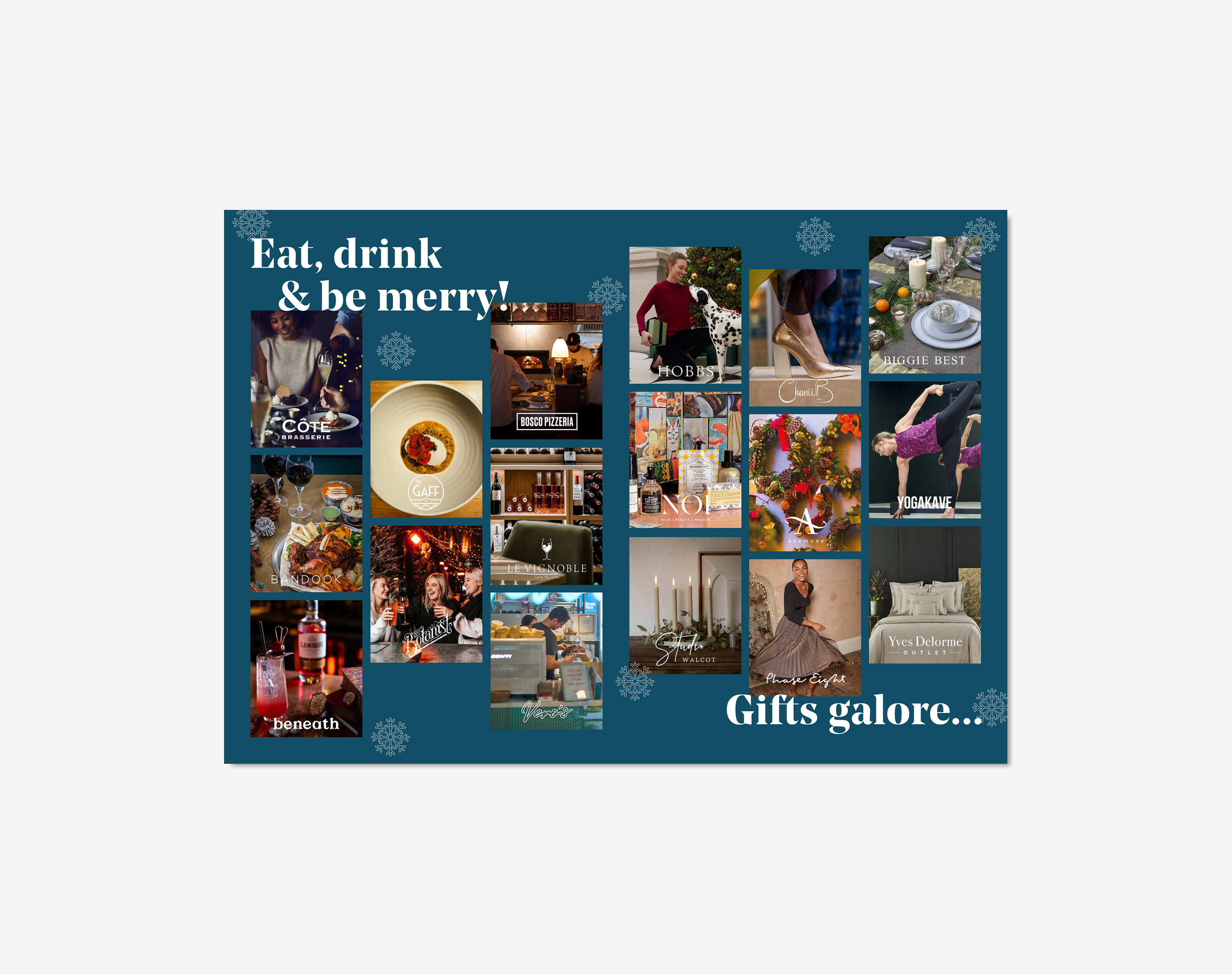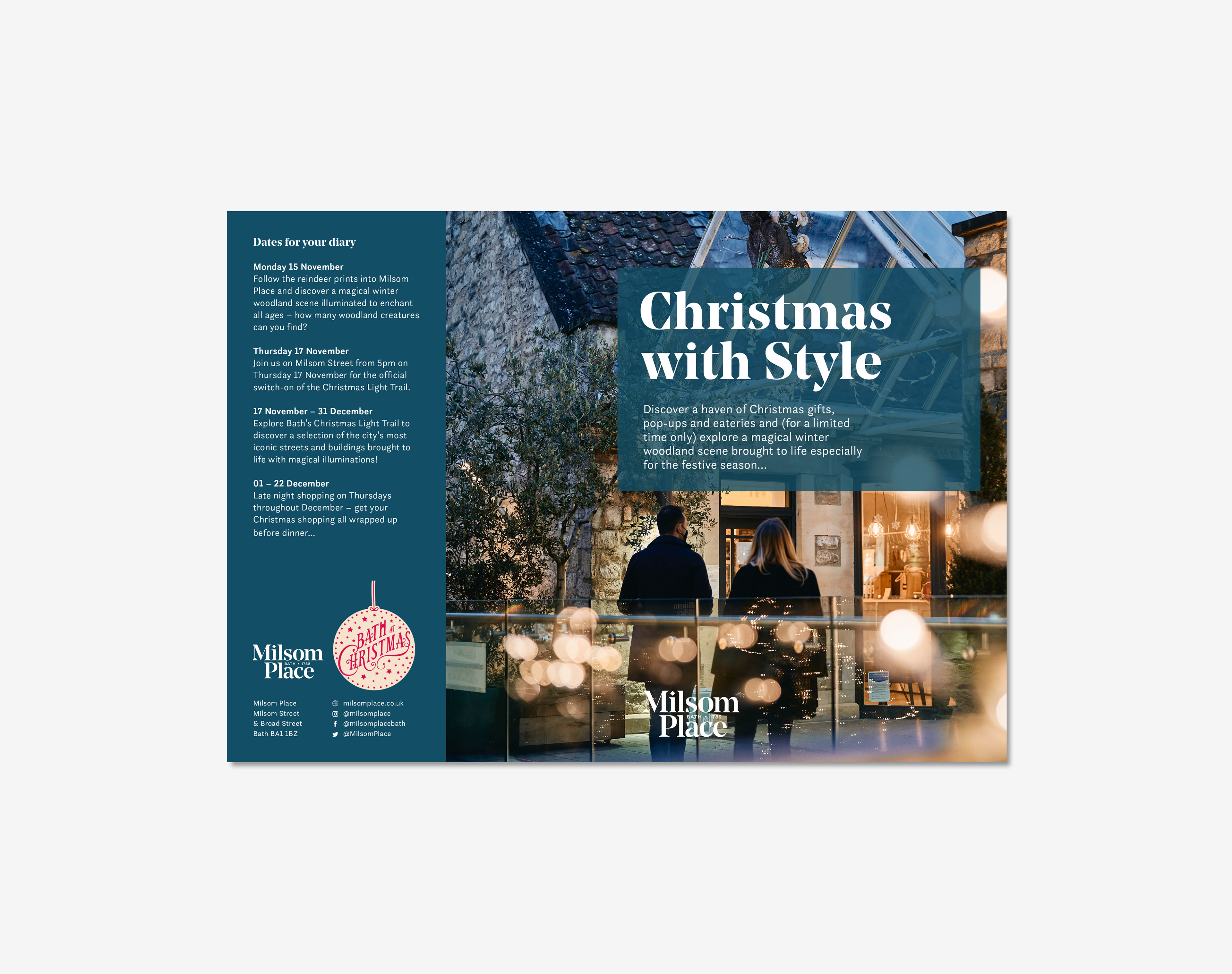 A printed leaflet to promote Milsom Place in Bath, Christmas 2022.