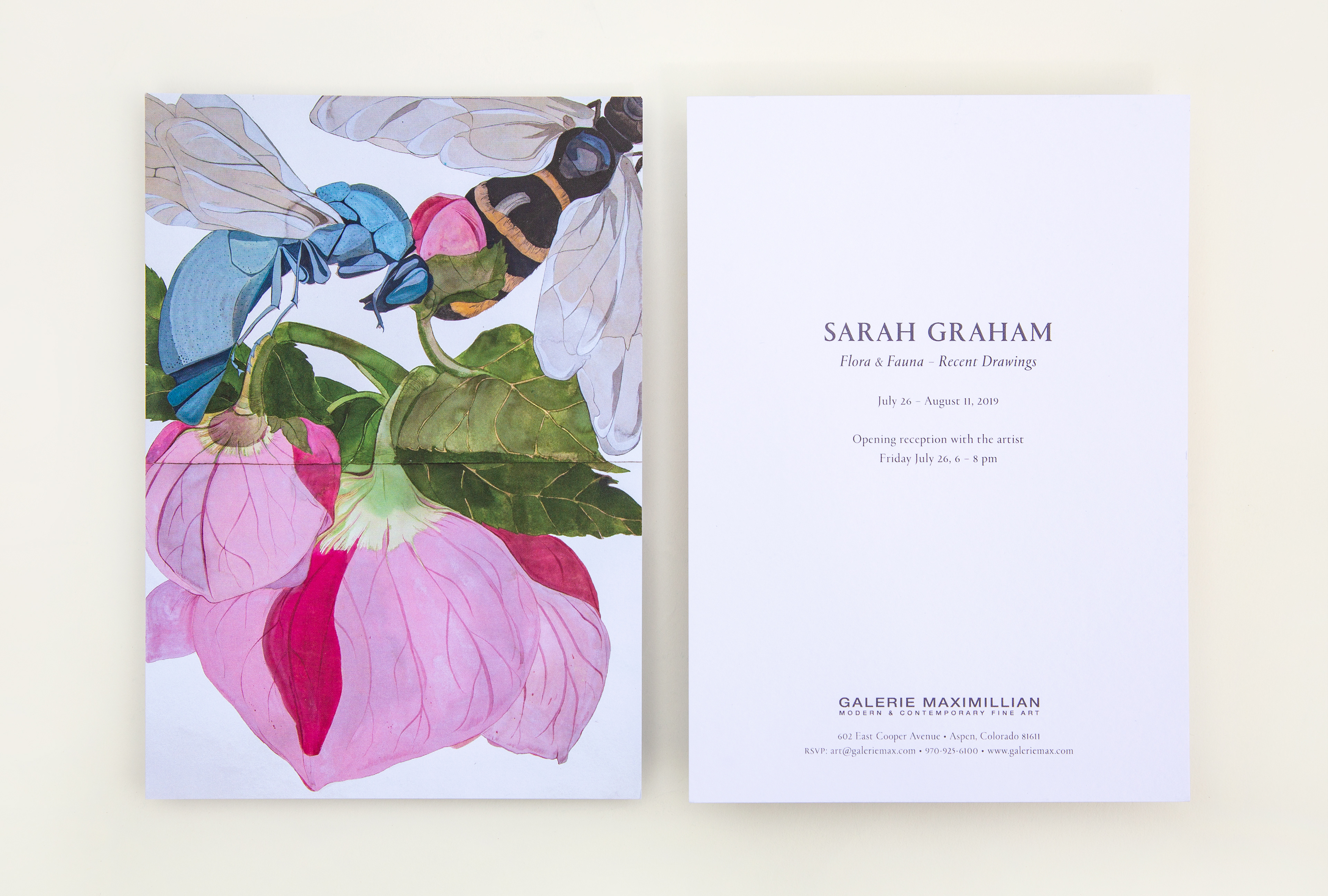Invitation and catalogue design for the exhibition 'Sarah Graham – Flora & Fauna – Recent Drawings' Galerie Maximillian, Aspen 2019