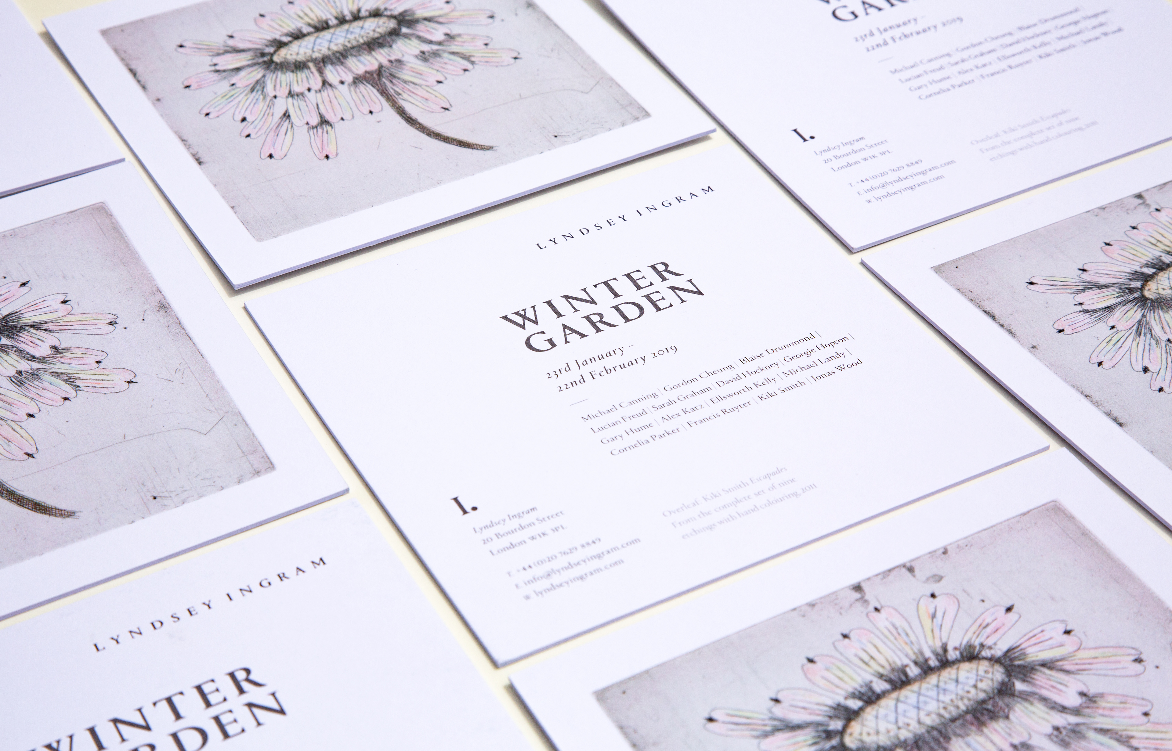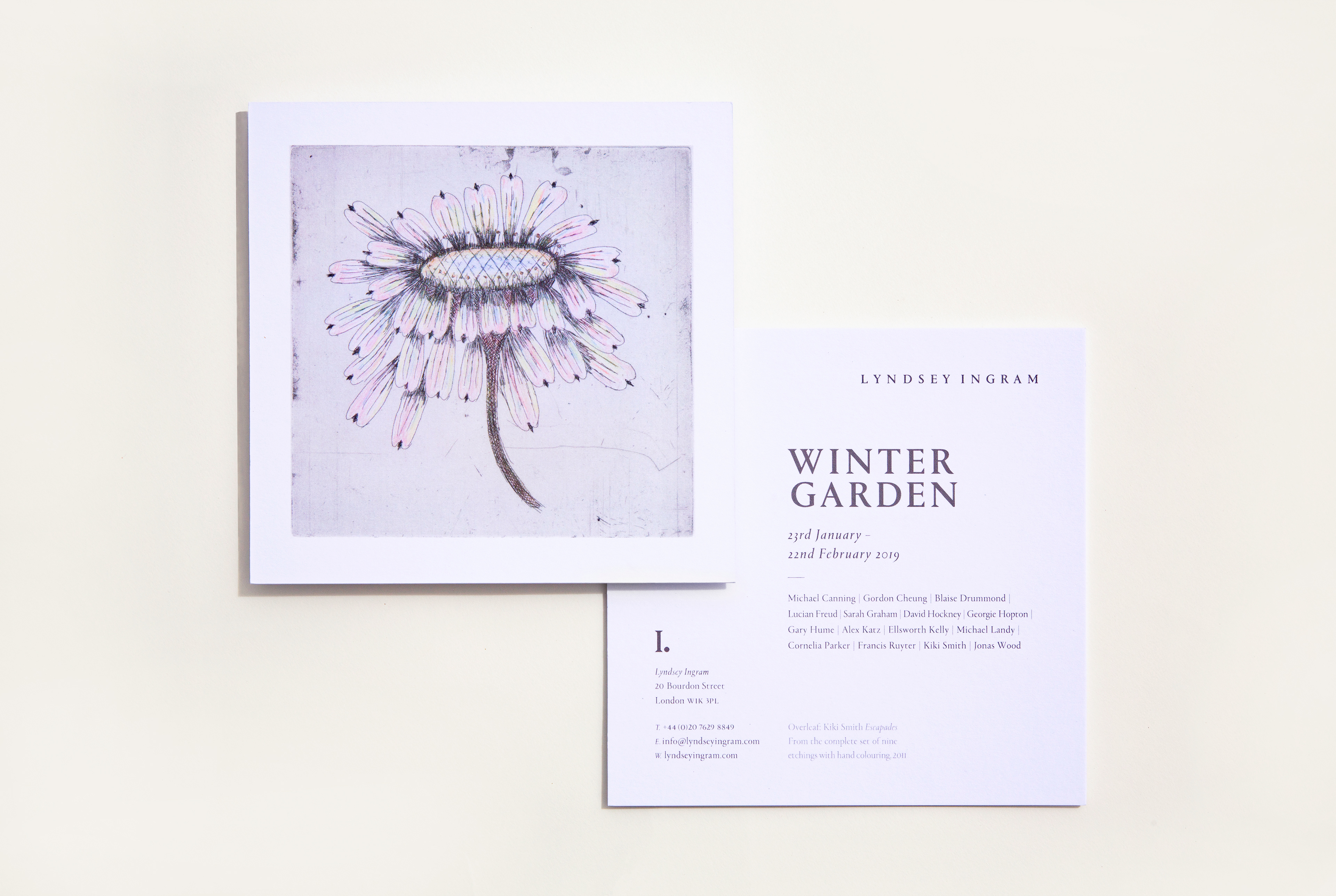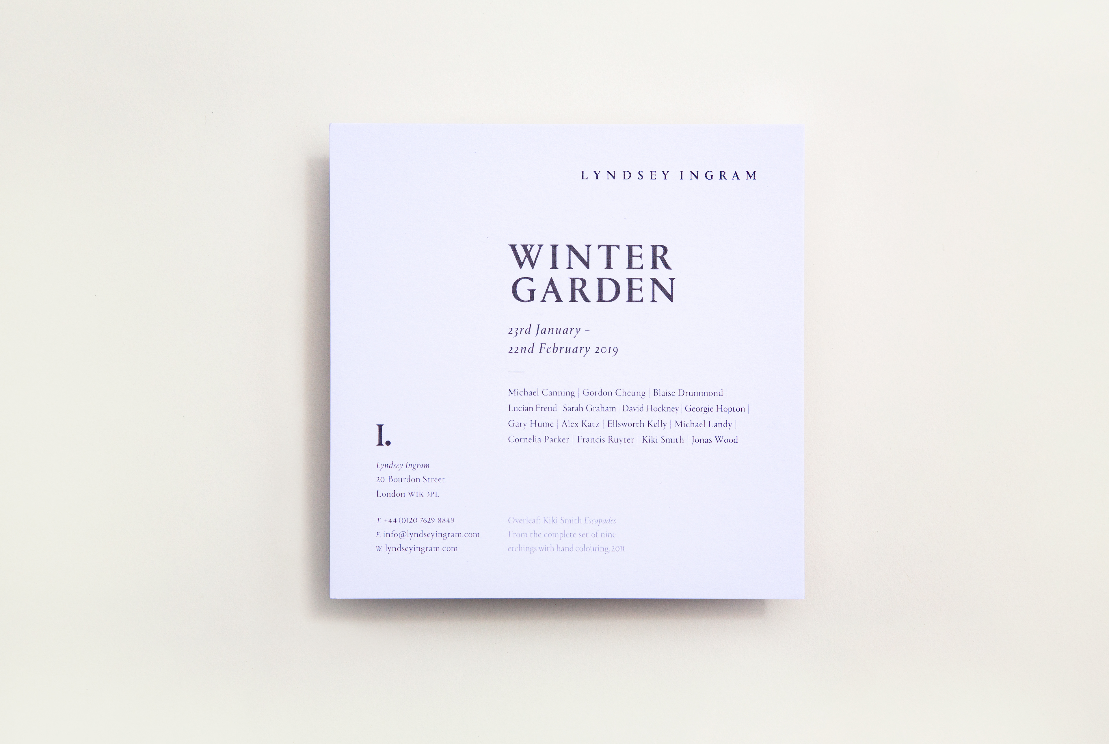 Invitation design for the exhibition 'Winter Garden' Lyndsey Ingram, London 2019